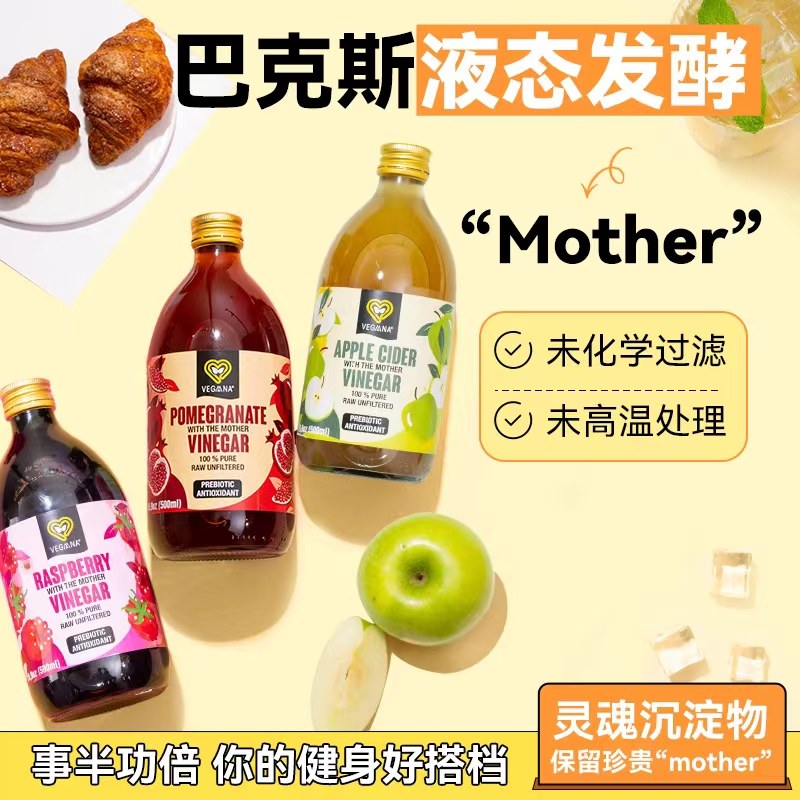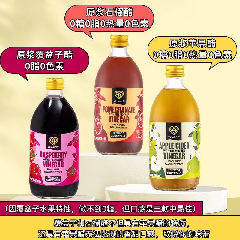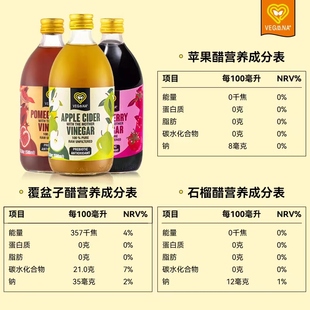 VEGAANA原浆苹果醋石榴醋覆盆子醋500ml西班牙进口运动健身饮
