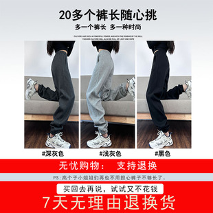 宽松高腰超长卫裤 秋冬加绒哈伦裤 子 女高个子加长束脚裤 深灰运动裤
