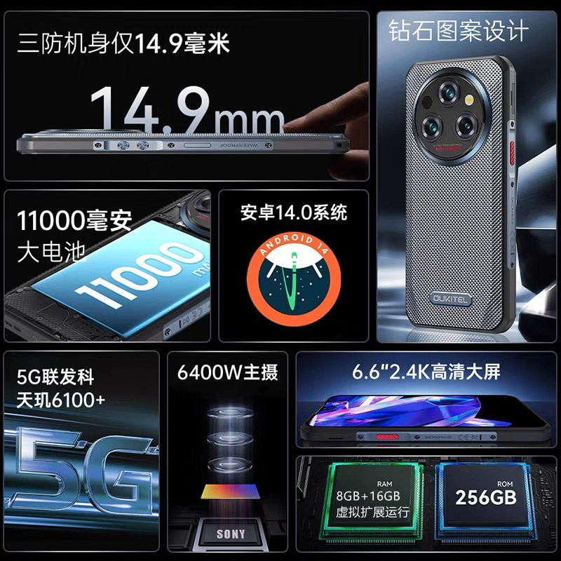oukitel欧奇WP35轻薄5G全网通三防手机超长待机Google原生安卓14
