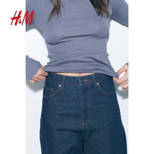 T恤2025冬季 时尚 新款 圆领棉质修身 休闲上衣1254718 简约长袖 HM女装