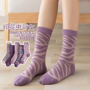新疆棉袜子女2025秋冬中筒纯棉miu风简约时尚 百搭日系堆堆长筒袜