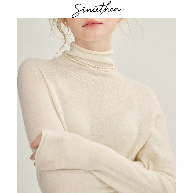 内搭纯白打底衫 千金感穿搭白色高领毛衫 女 小香风针织衫 sincethen