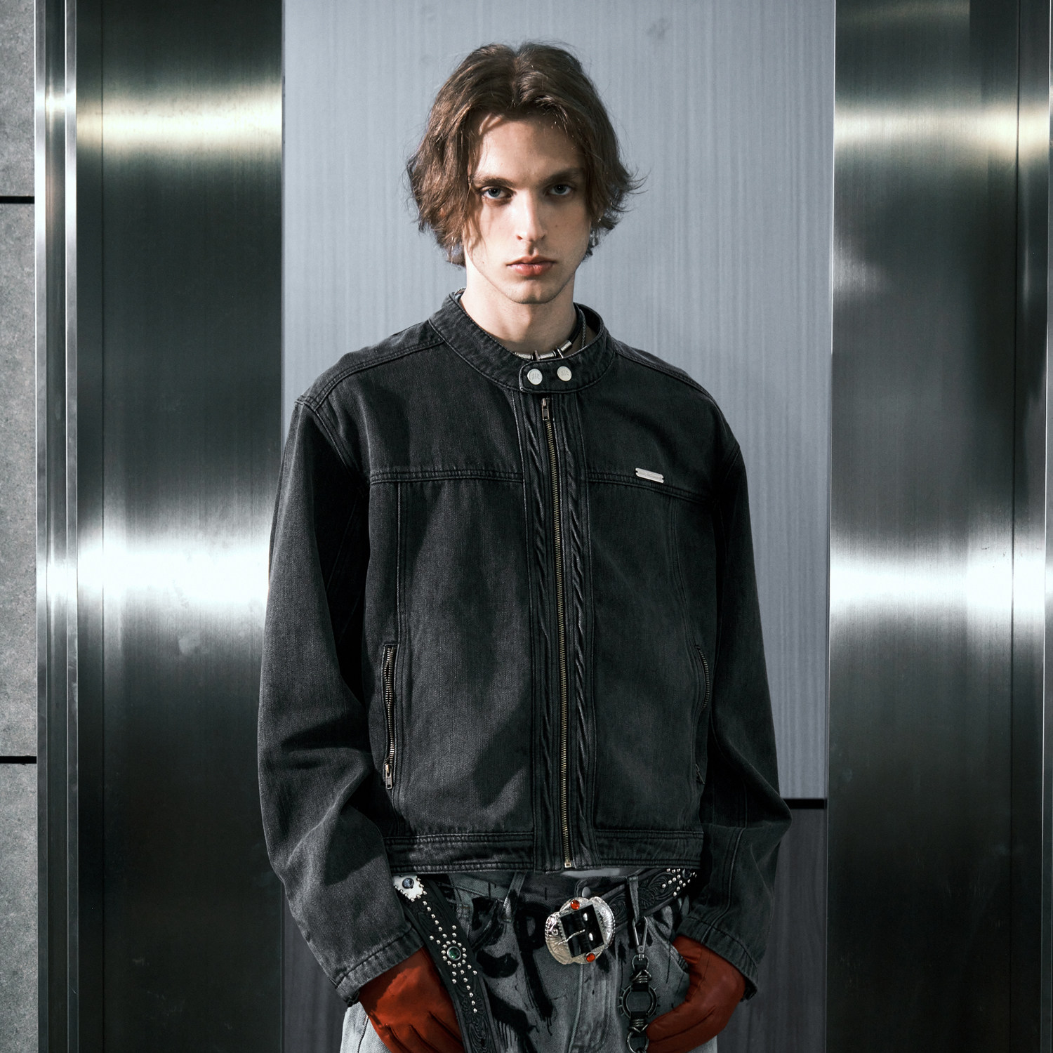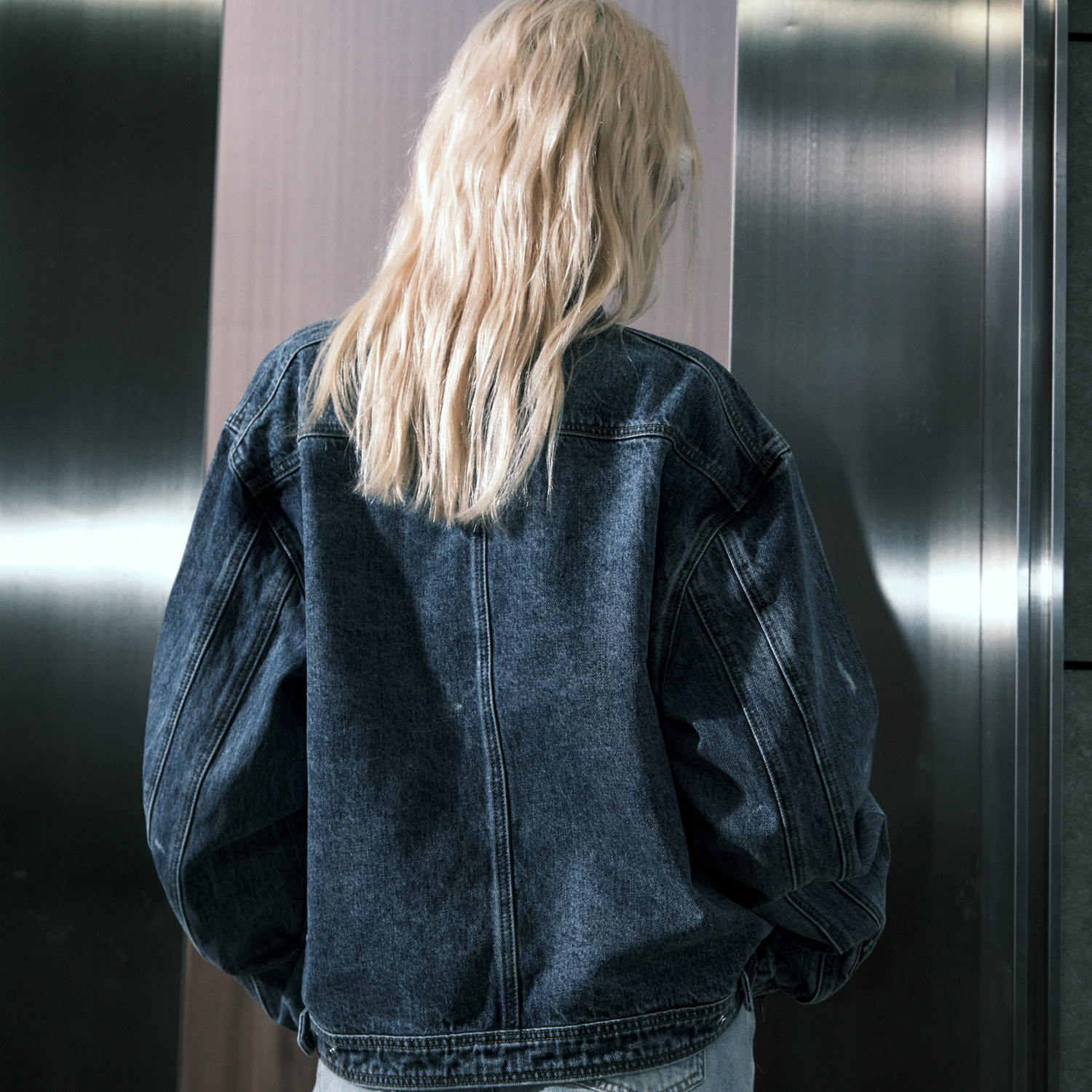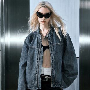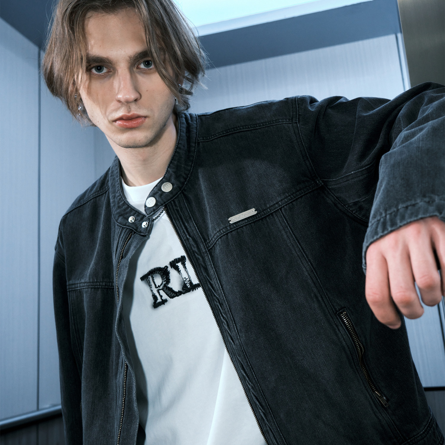 宽松高街情侣分割黑色水洗夹克女 复古牛仔外套男潮牌 RIC秋季 美式