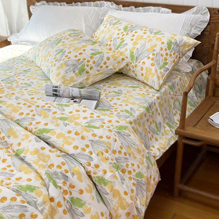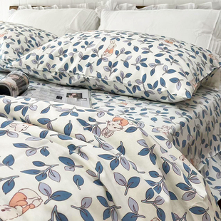 兔年清新斜纹100%纯棉碎花被套全棉床单件150x200x230单双人被罩
