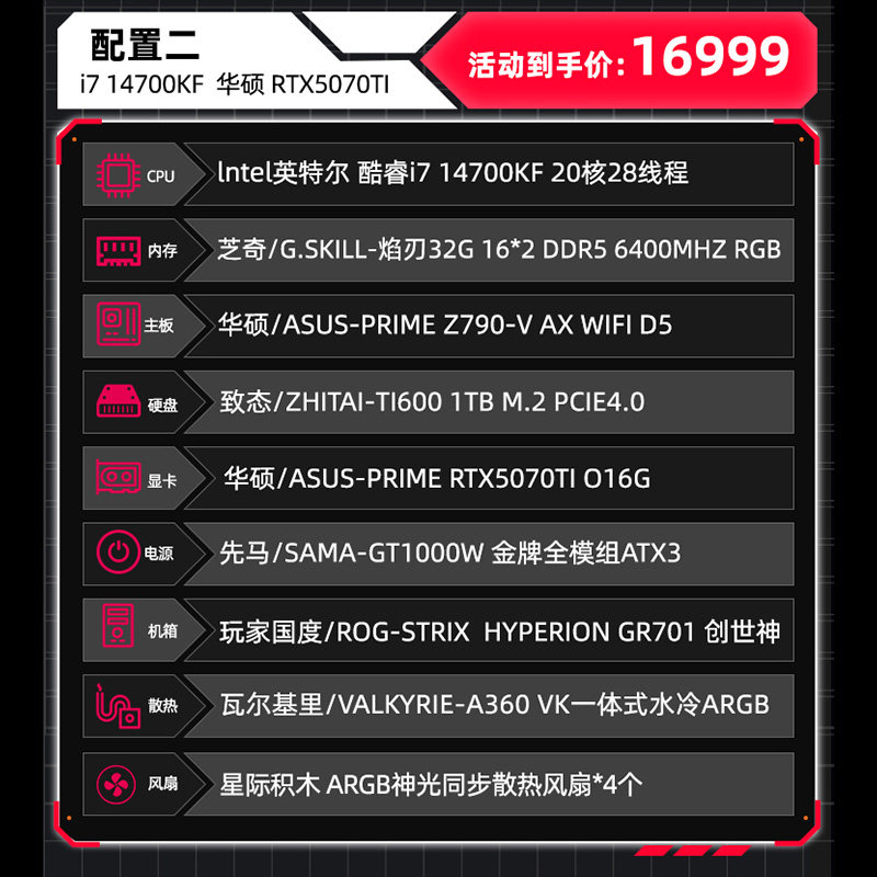 5090D夜神显卡AI游戏直播主机 RTX5080 华硕ROG全家桶i9 14900KF