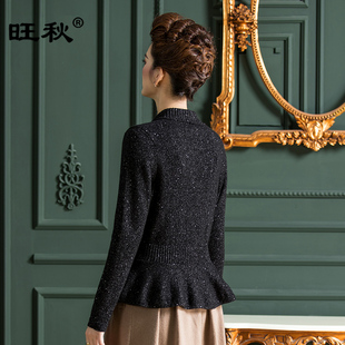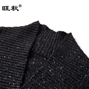 羊毛衫 韩版 洋气女装 收腰显瘦黑白点子纱针织西装 外套 V领羊毛开衫