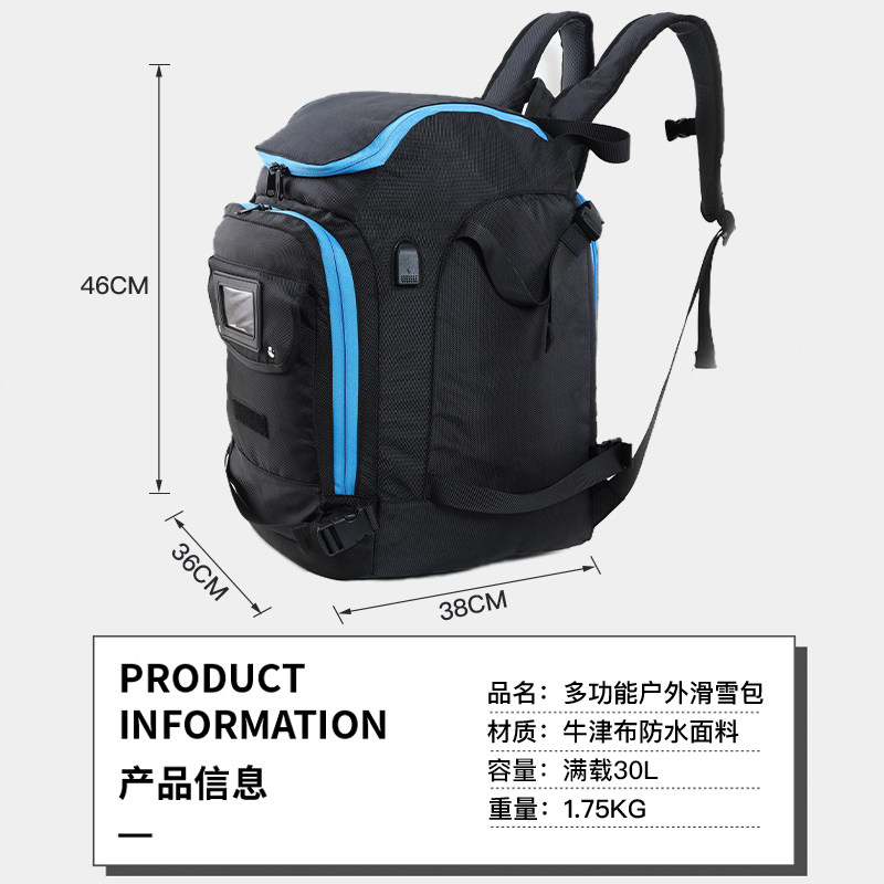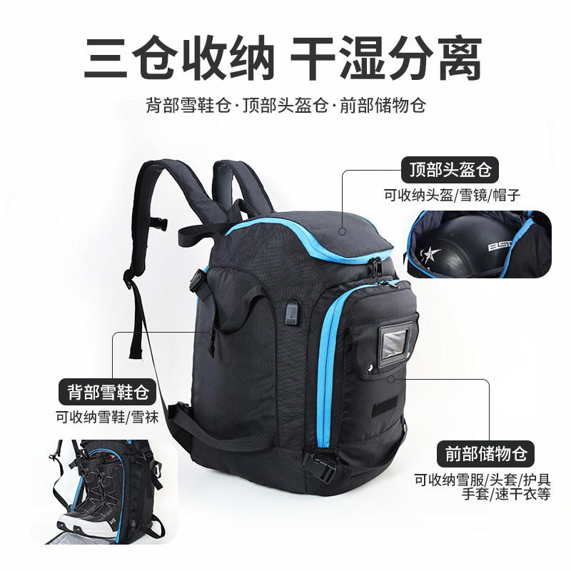 滑雪包大容量收纳单双板双肩干湿分离雪鞋 备防水多功能背包 雪具装