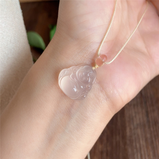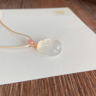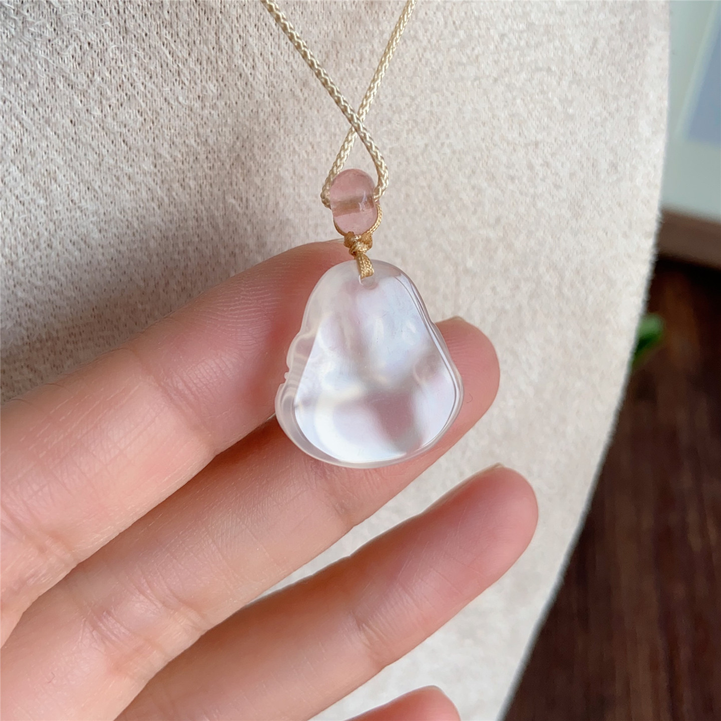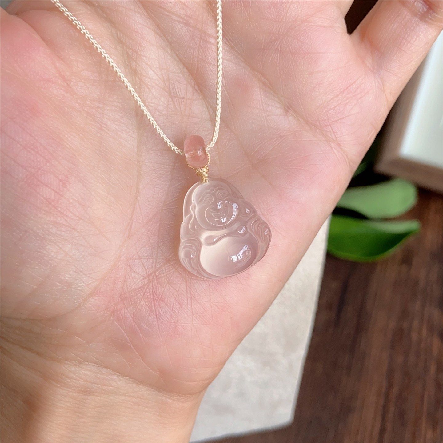 天然正品 高冰白玉髓玉髓迷你弥勒佛项链佛公吊坠宝宝女士礼物玉佩