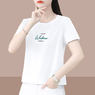 日常简约休闲小众易搭印花显瘦T恤女士夏季 纯棉女装 百 芭拉婷