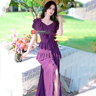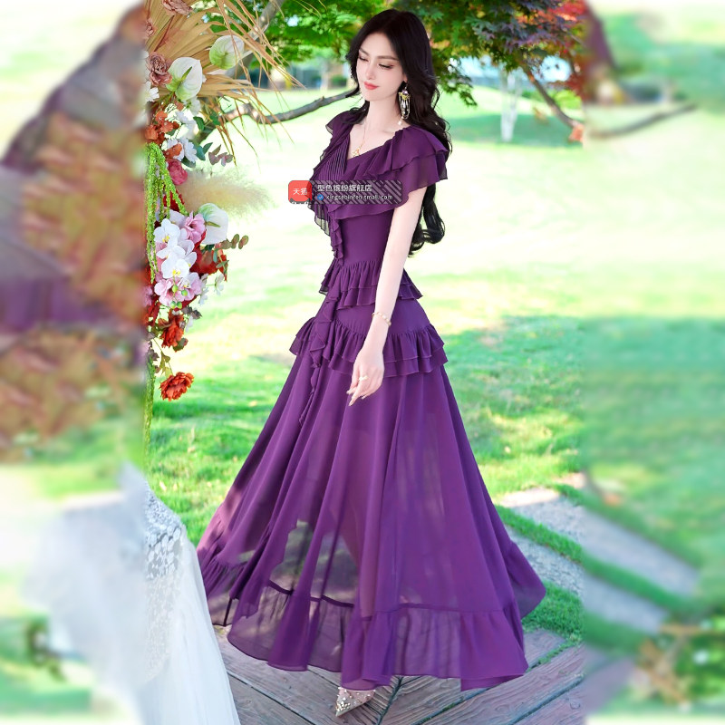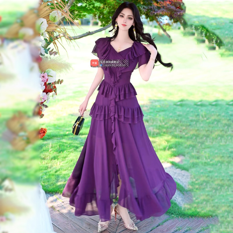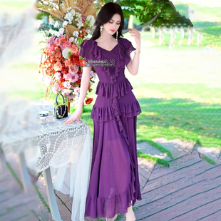 小众波西米亚长裙 气质女神范荷叶边雪纺连衣裙2025新款 夏季 法式