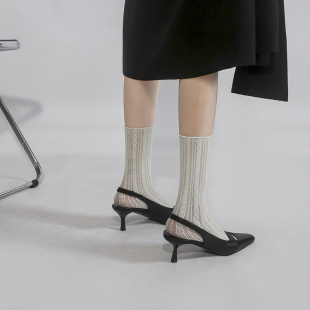 设计感小众镂空韩系千金学院风凉鞋 黑色高跟鞋 女 高智少女 林向晚