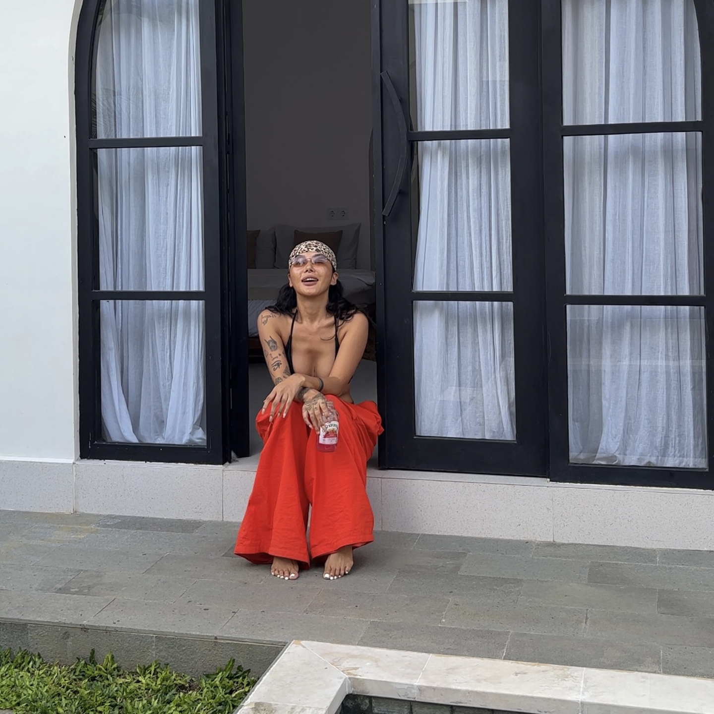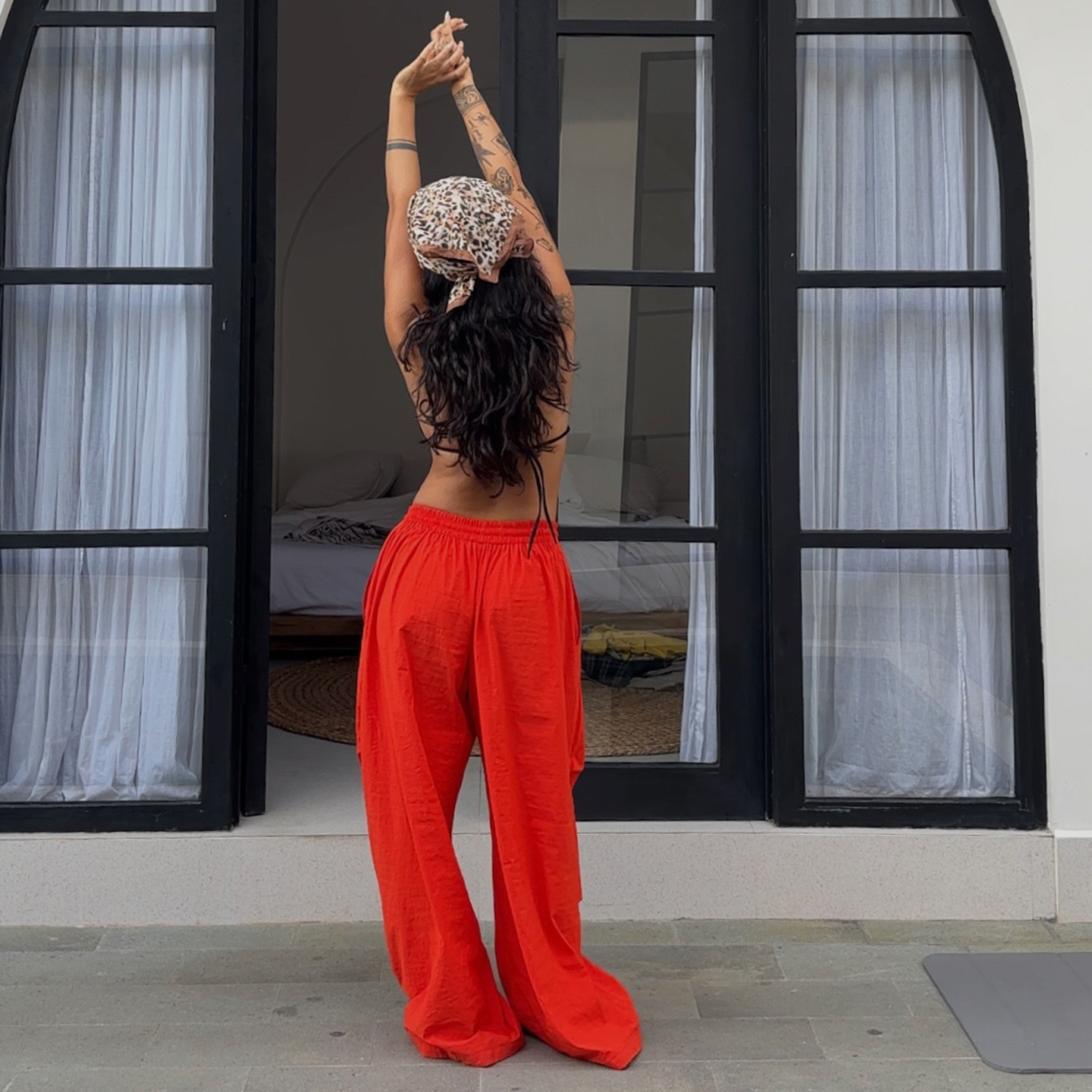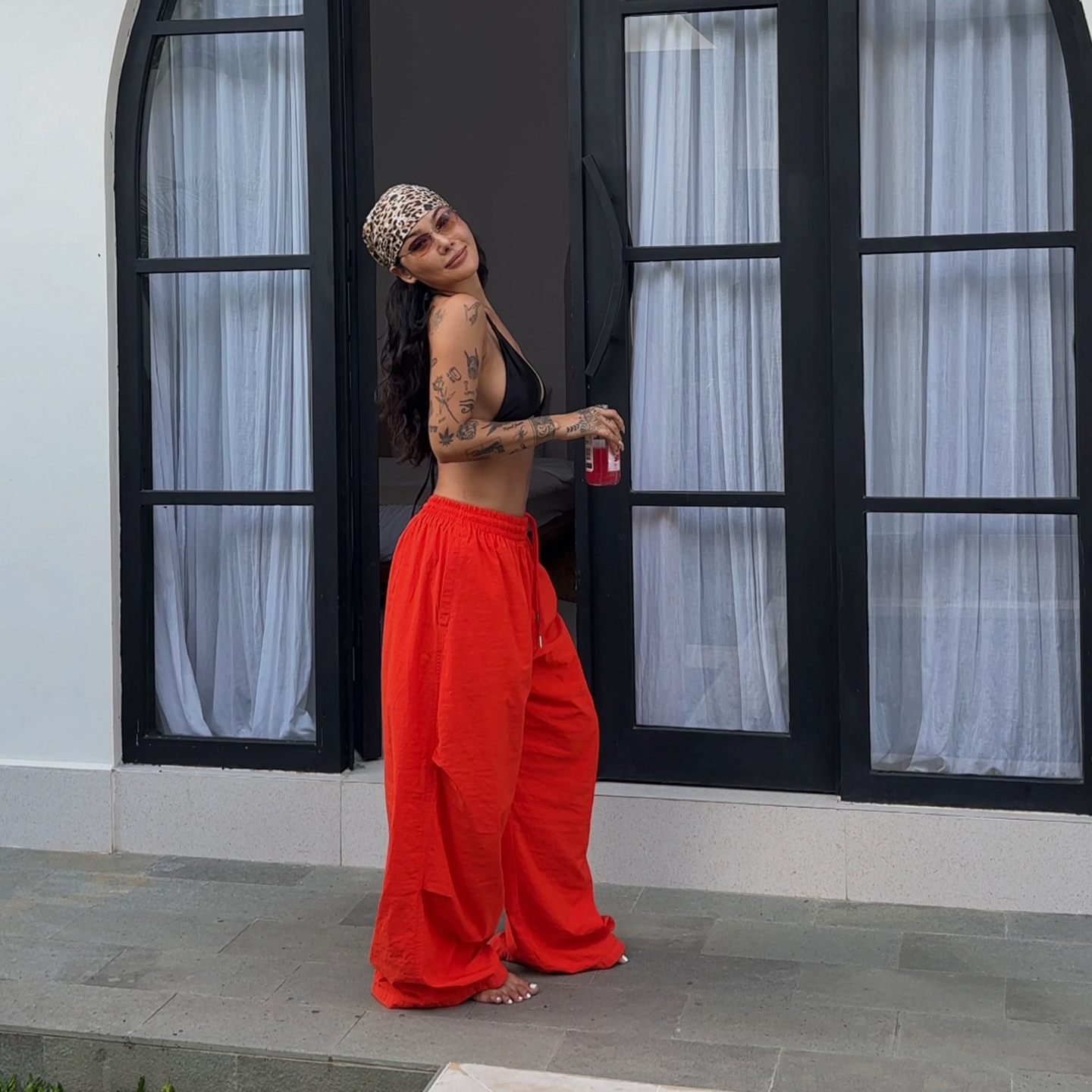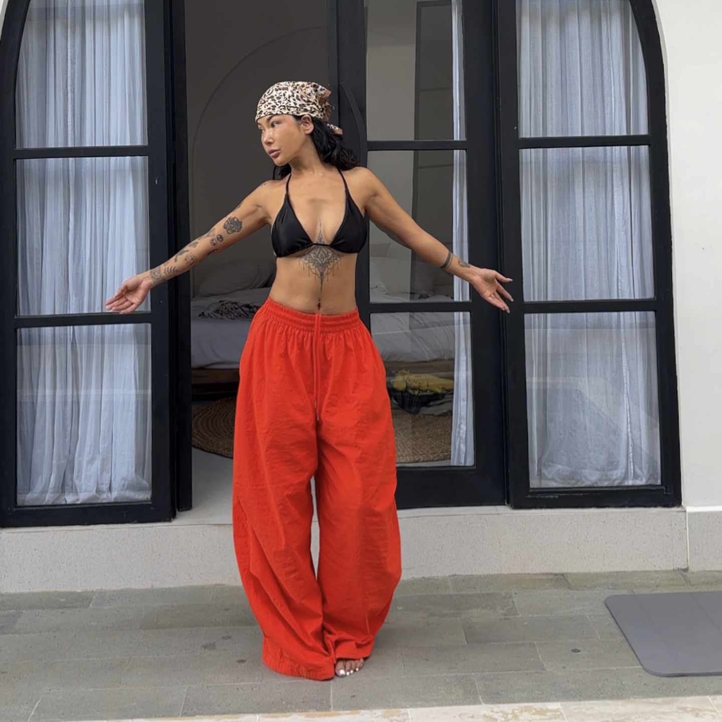 炸街欧美网红度假休闲风复古设计感个性 橘红色降落伞裤 子女伞兵裤
