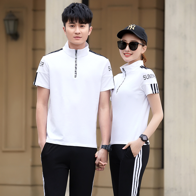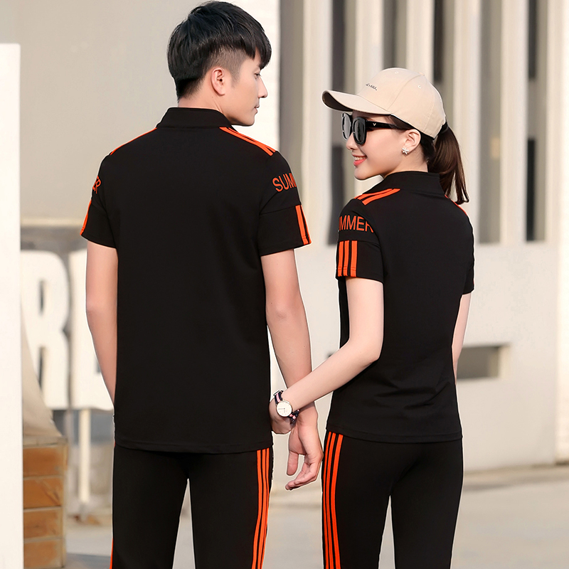 长裤 短袖 运动服男女情侣装 韩版 女夏两件套 运动套装 休闲套装 男夏季
