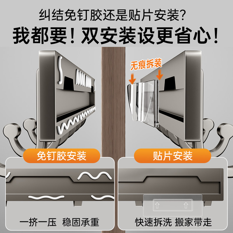 拖把挂钩免打孔卫生间收纳钩子粘钩承重挂架强力粘胶壁挂无痕夹