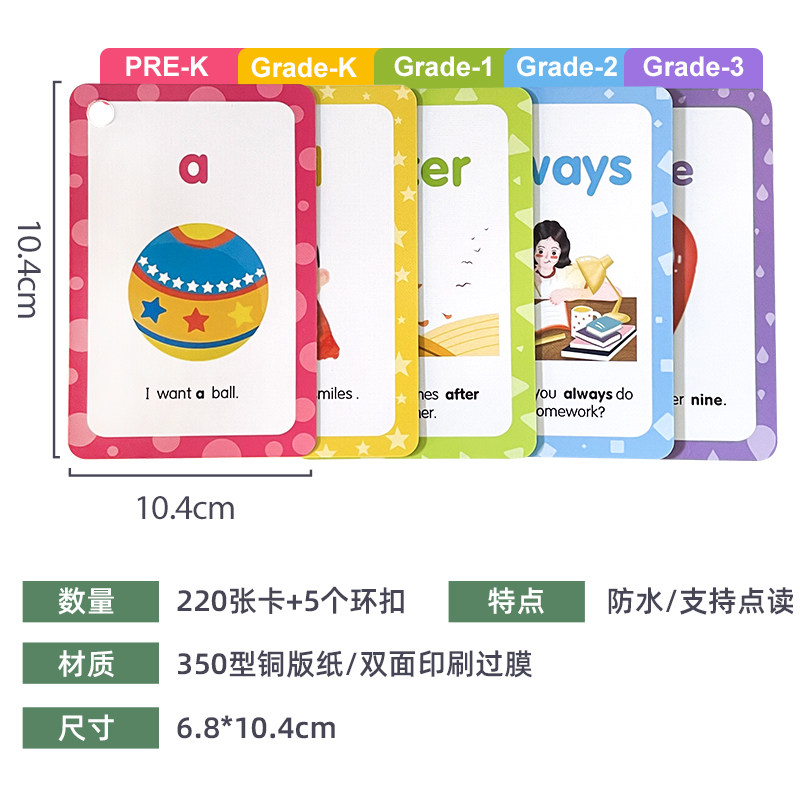 220个高频词闪卡片小达人小蝌蚪点读sight words单词句子学习早教