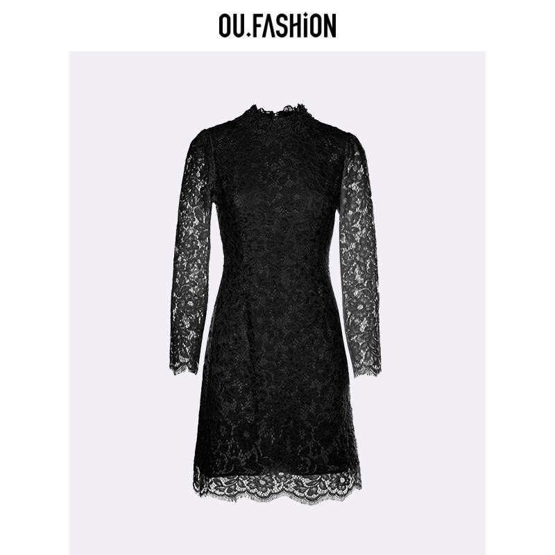 气质长袖 欧点法式 OU. 蕾丝连衣裙1122340403 商场同款
