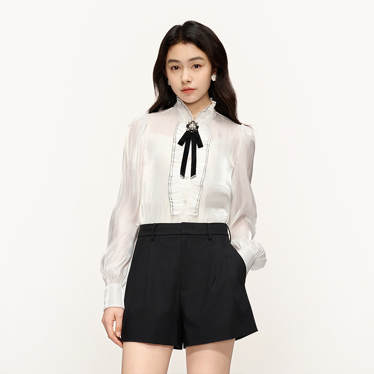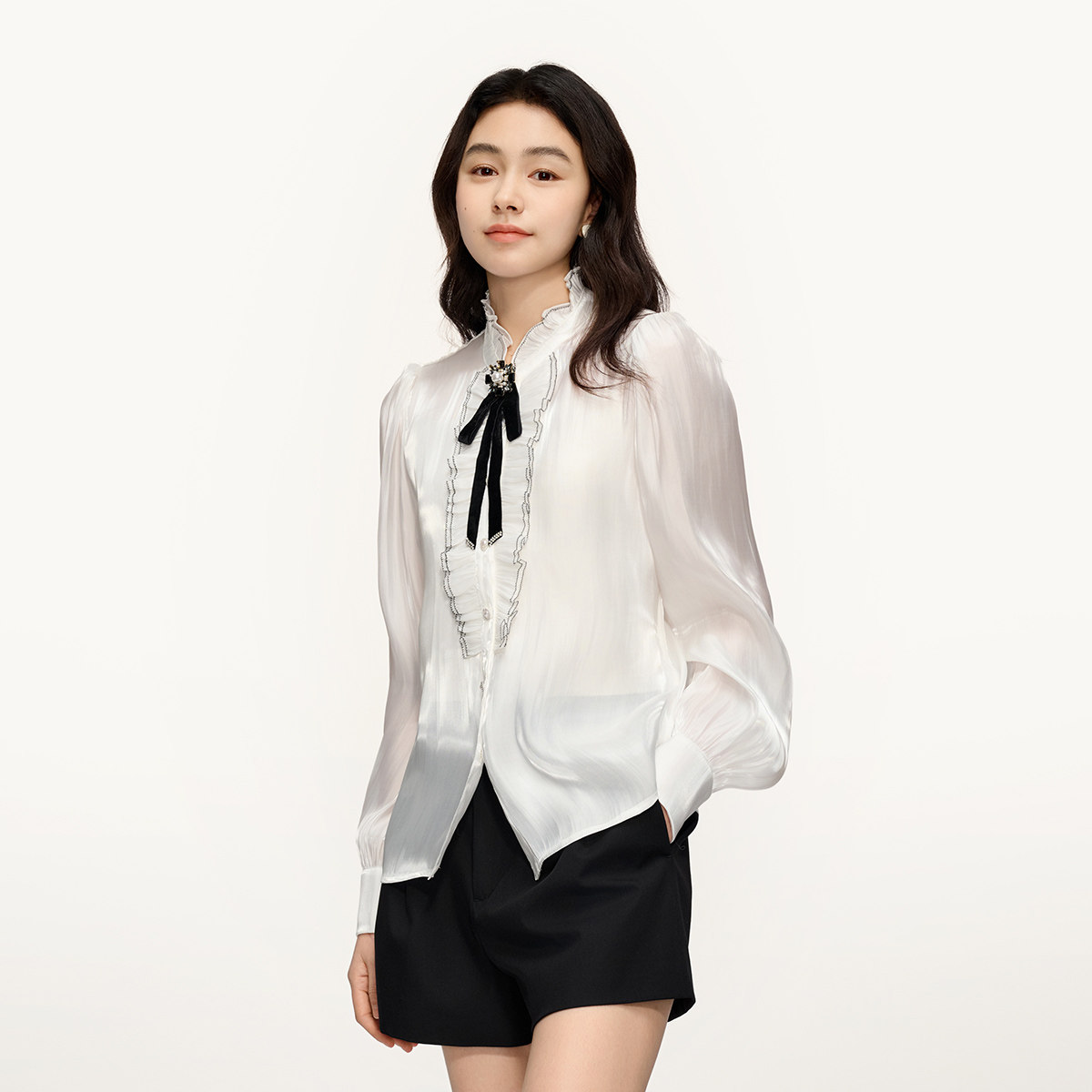 PLUS衬衫 女秋装 法式 衬衣2025新款 宫廷千金风通勤波嬉风长袖 FIVE