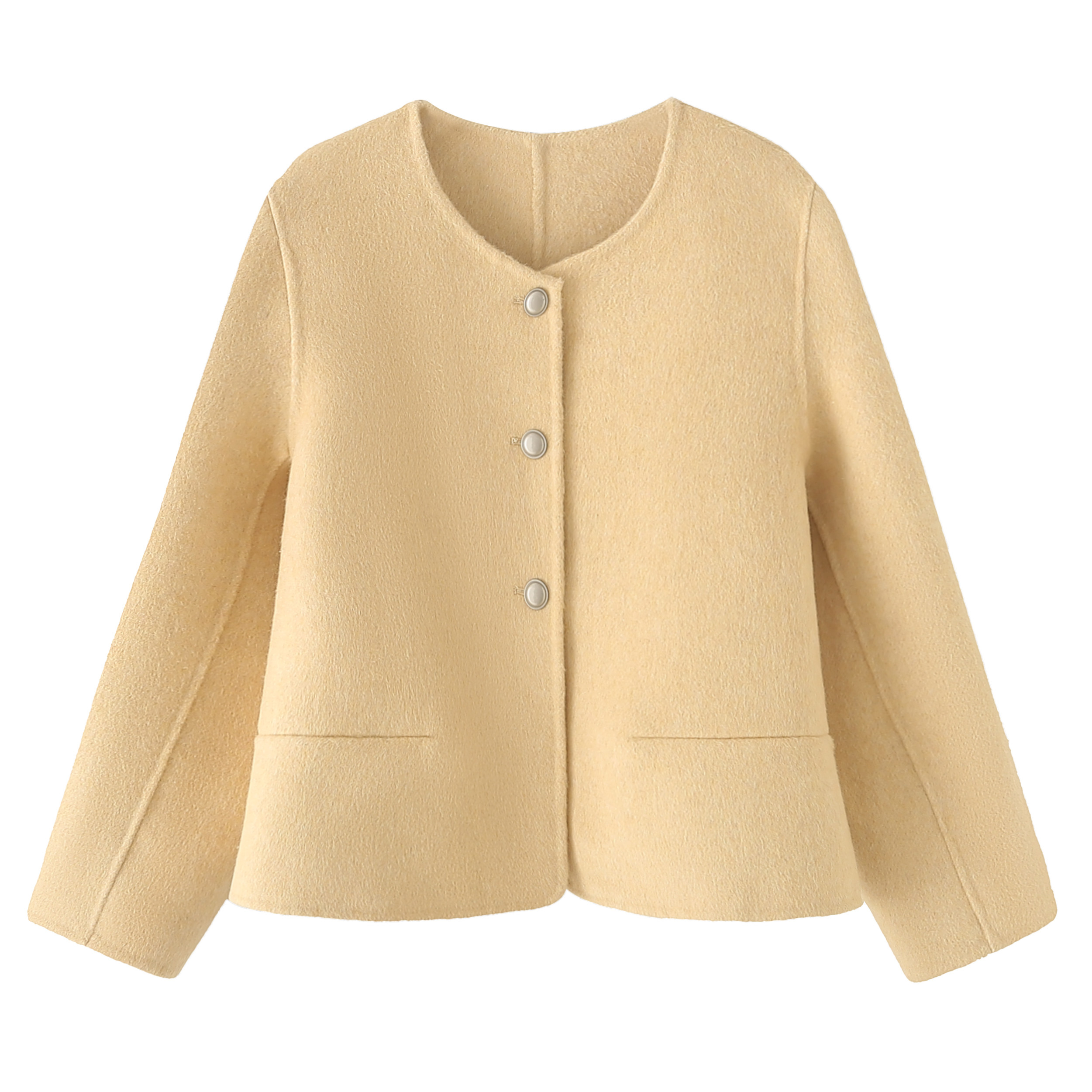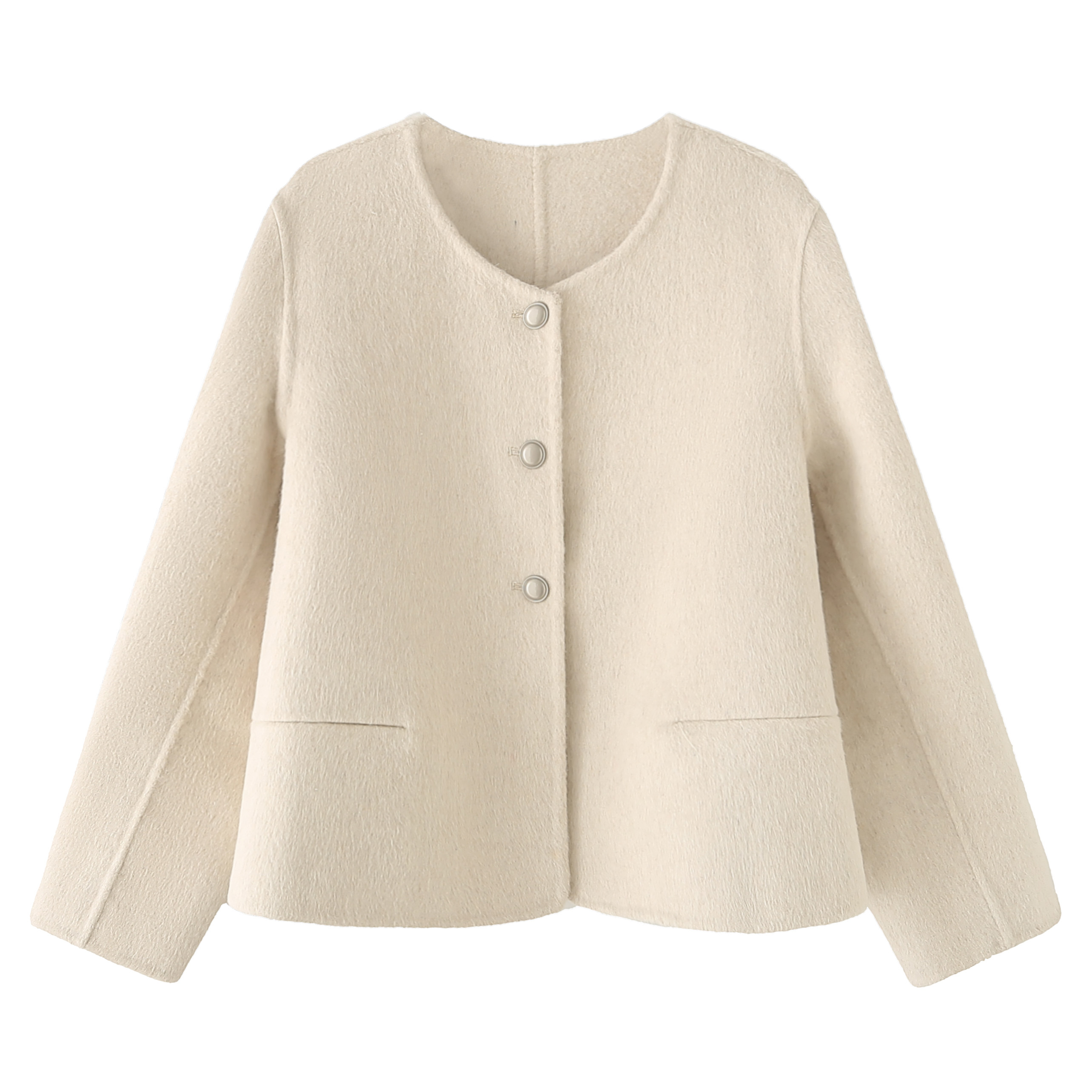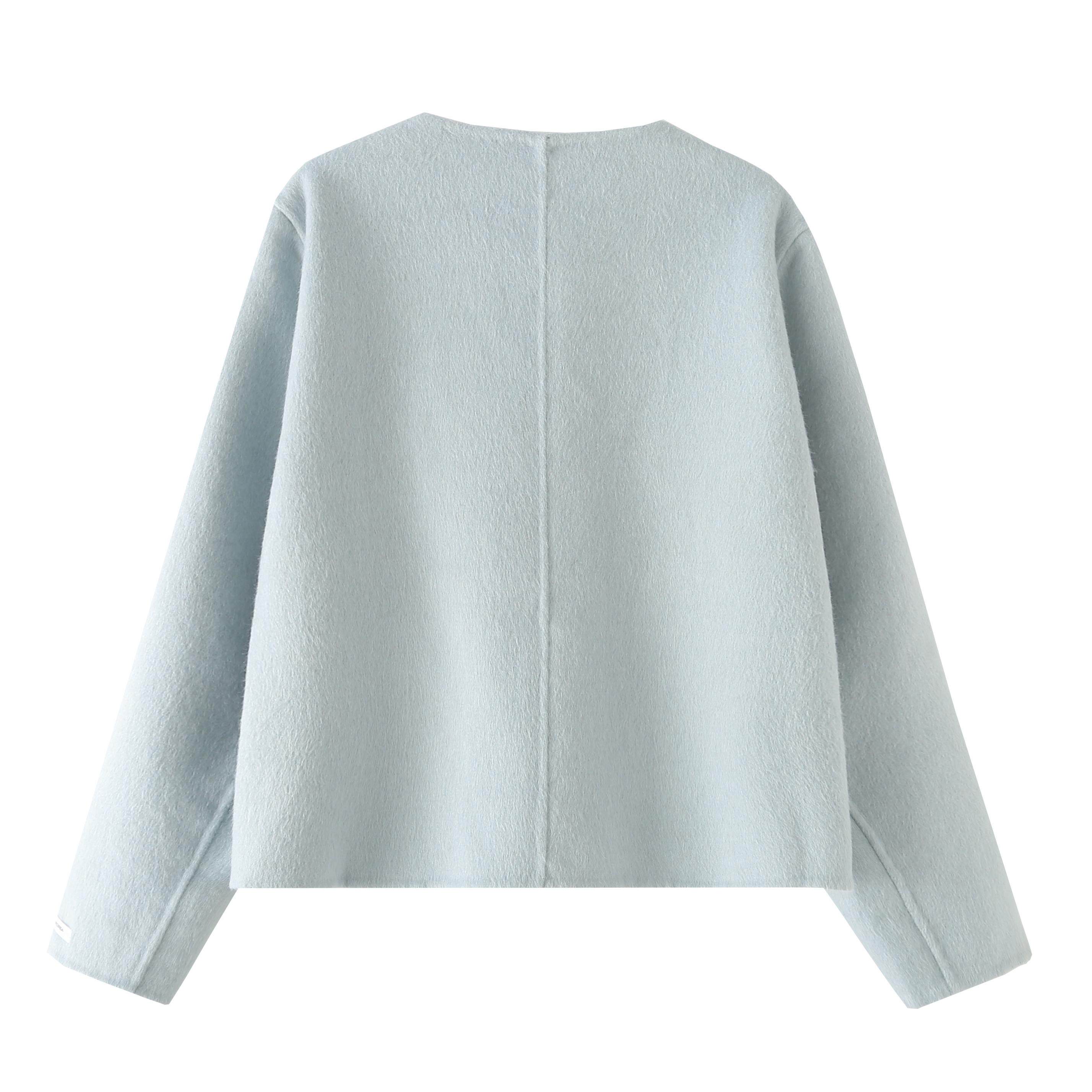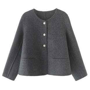 毛呢外套 双面羊毛大衣百搭宽松小香风圆领女士短款 艾格春季 新款