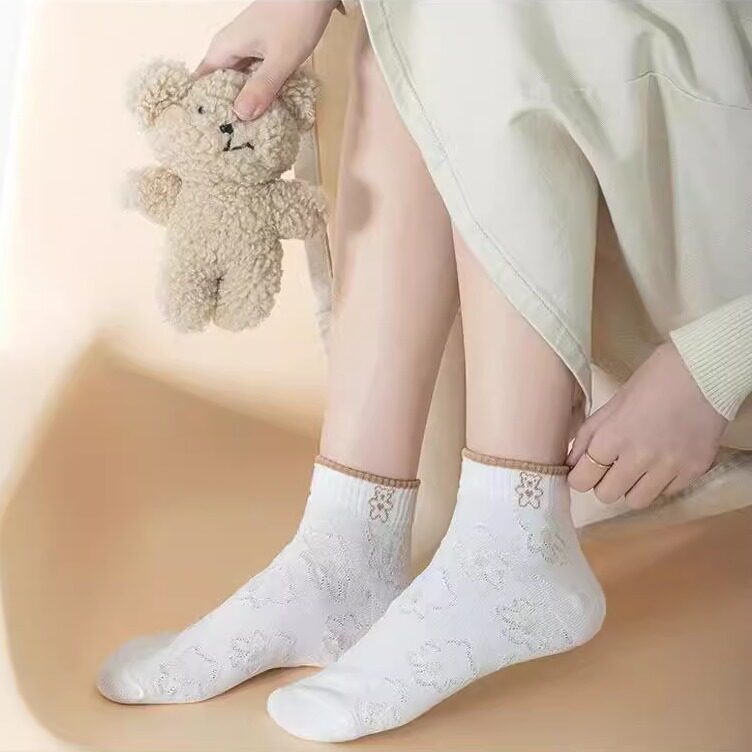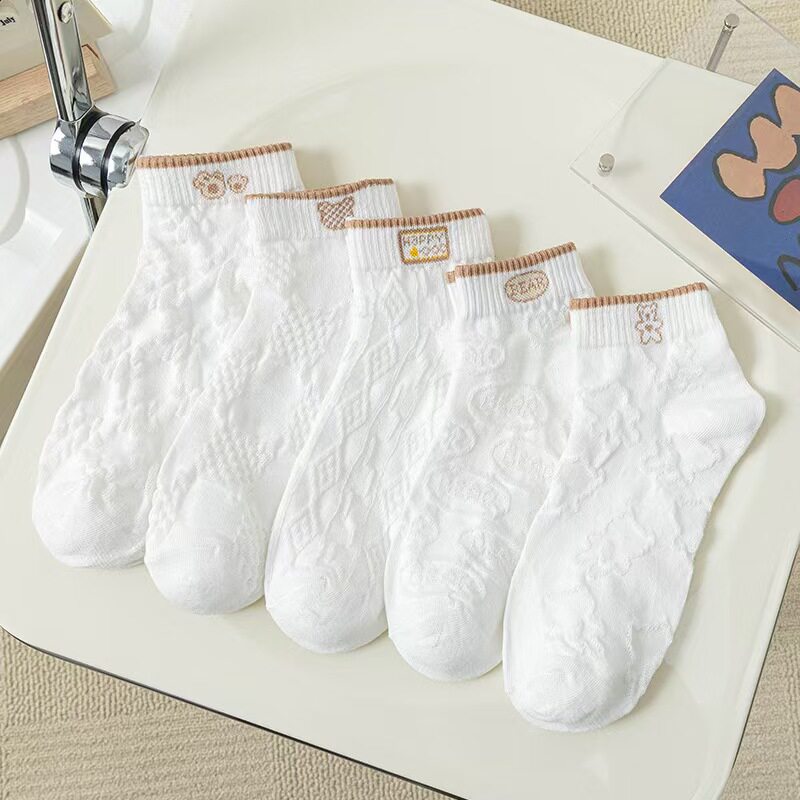 2025新款 袜子女短袜小白袜日系卡通少女立体压纹学生袜百搭 薄款