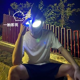圣诞节迪迦头套头盔奥特超人儿童成人触摸发光面具曼全脸男孩玩具
