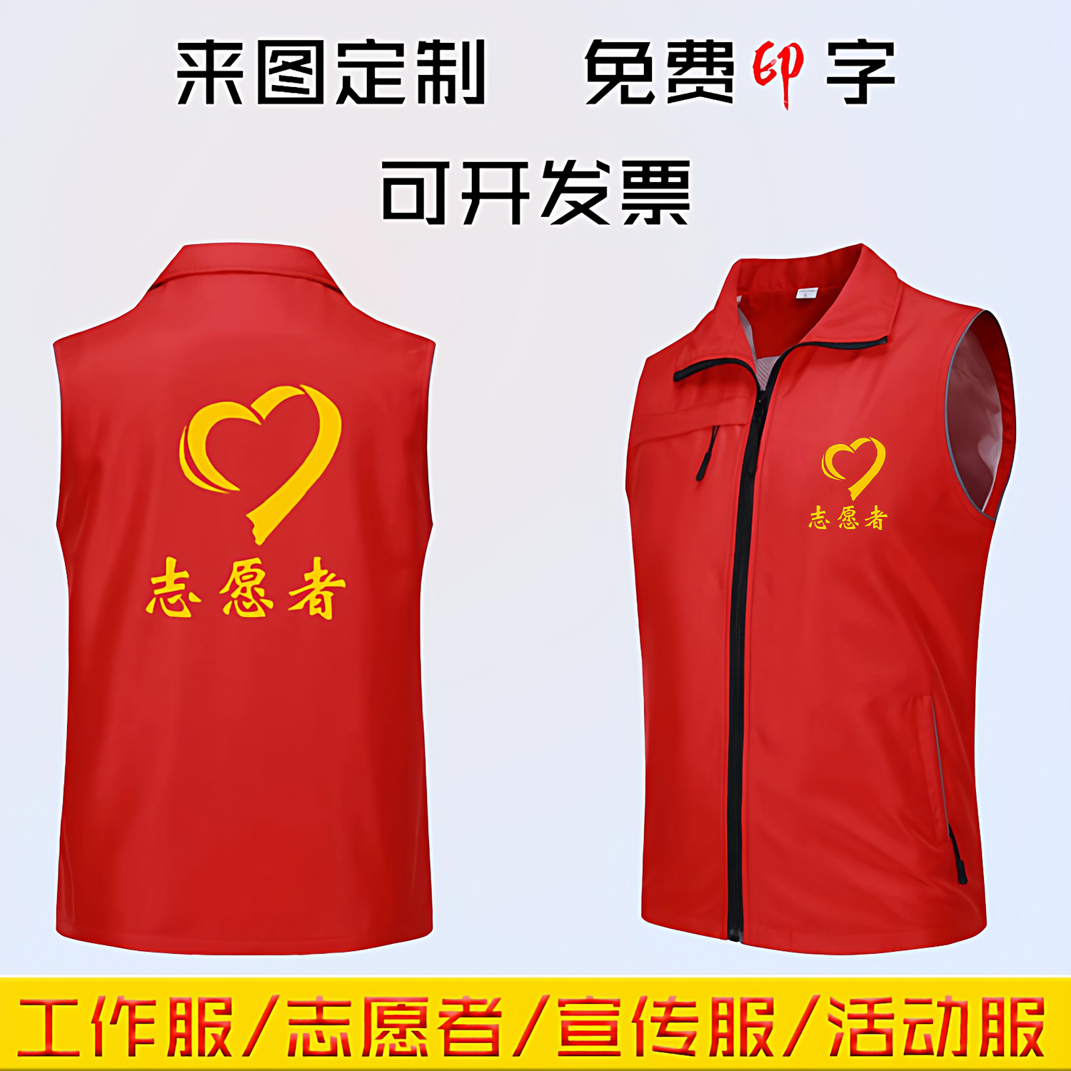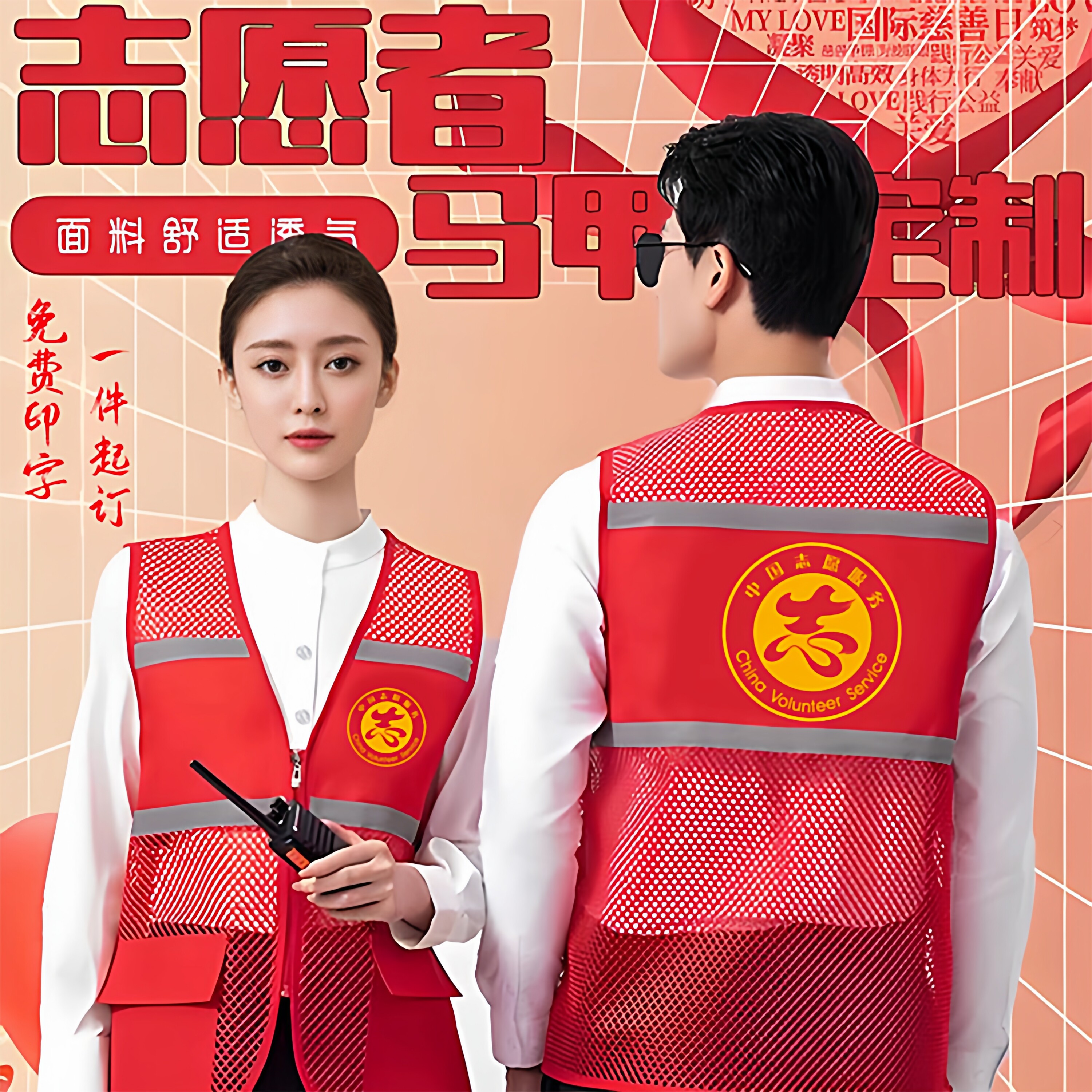 志愿者马甲定制印logo渔网夏季 订做 红背心义工网格状工作服广告衫