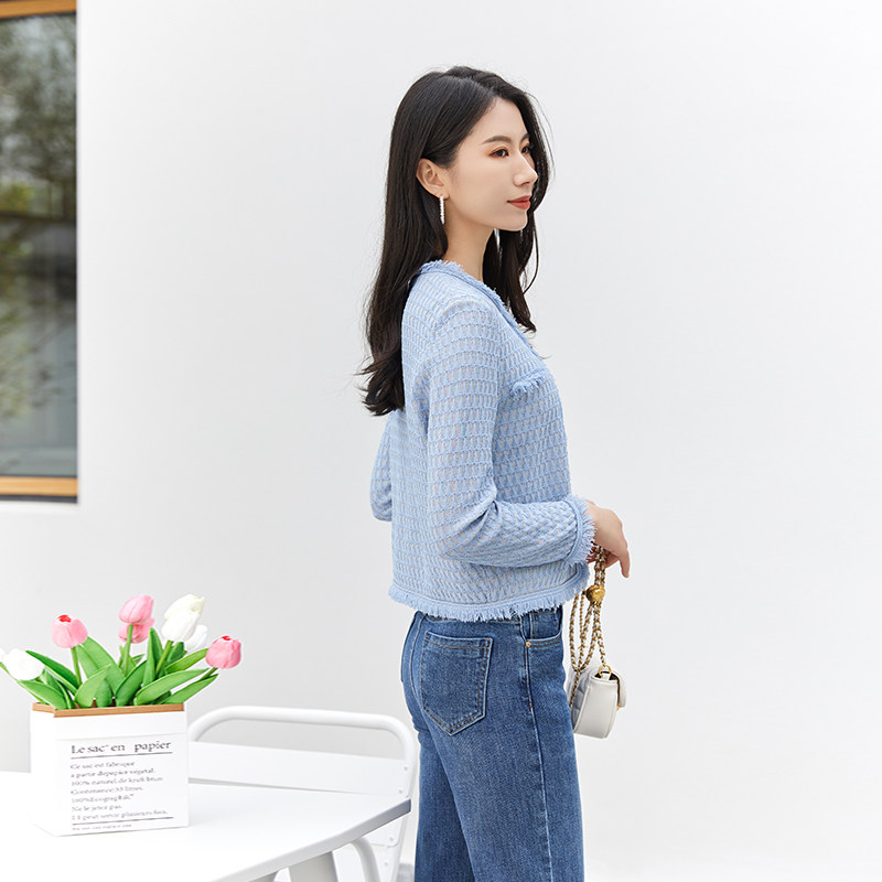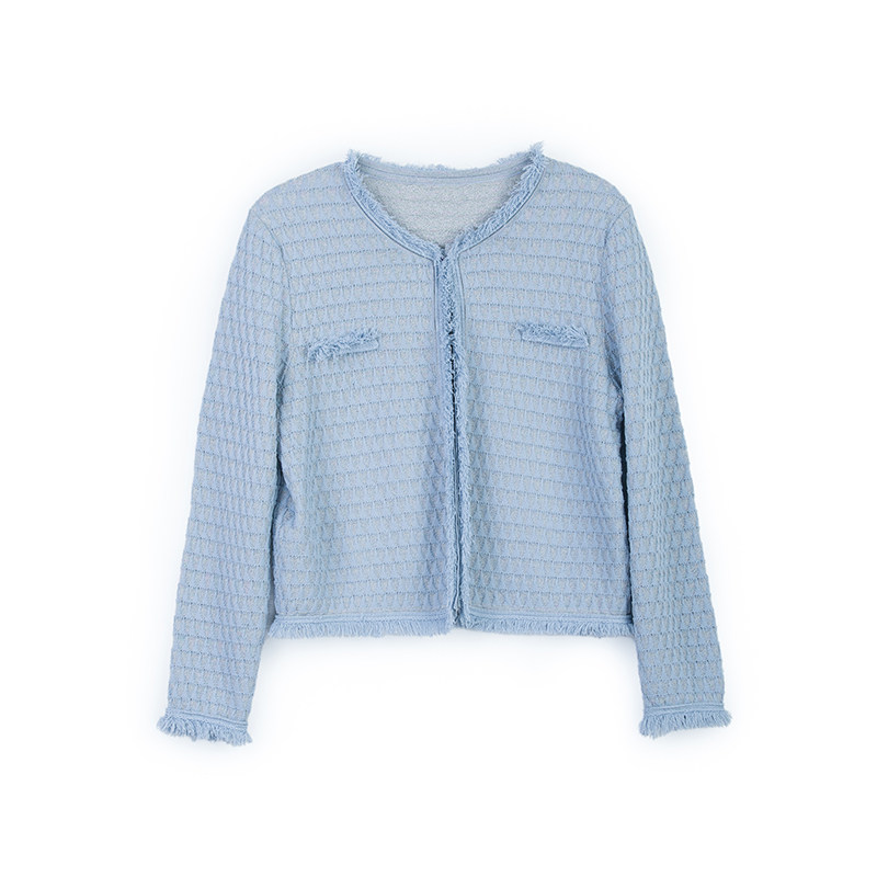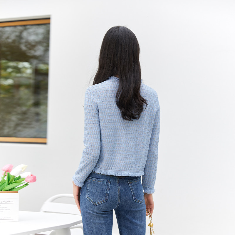 短款 粉蓝小香风针织开衫 圆领流苏边箱型气质外套 26春季 诗梦女装