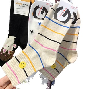 韩系中筒袜子女士纯色休闲长腰竖条纹堆堆吸汗防臭春秋款 美腿月子