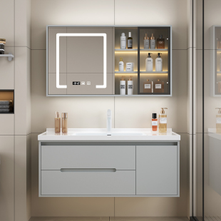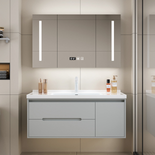 新款 橡木门板洗漱台洗脸盆组合卫生间洗手盆奶油一体浴室柜洗手池