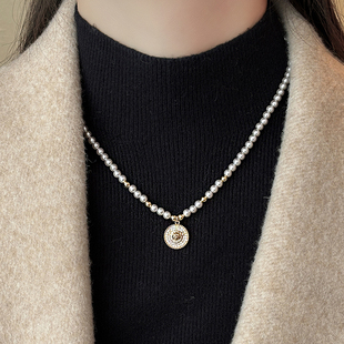 土星锆石吊坠别针项链女轻奢小众设计高级感锁骨链甜酷冷淡风配饰