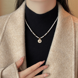 s925纯银黑玫瑰花串珠双层项链锁骨链女小众设计时尚 复古钛钢配饰
