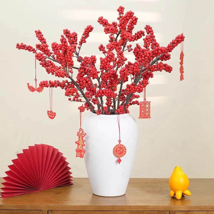 进口北美冬青鲜切红果真花鲜花云南基地直发水培切枝发财果年宵花