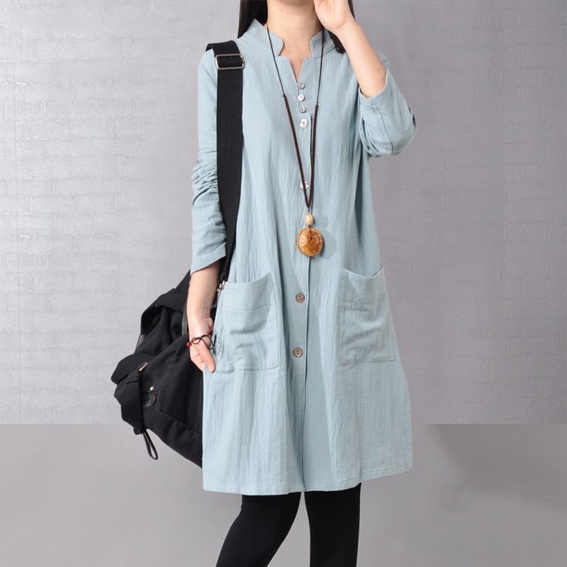 女2025春秋季 棉麻衬衫 新款 宽松妈妈文艺中长款 裙 大码 广东普宁衬衫