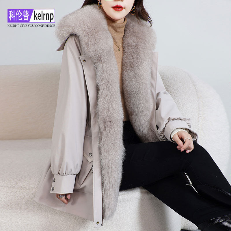 派克服女2025新中长百搭时尚 獭兔毛内胆狐狸毛领皮草大衣拆卸外套