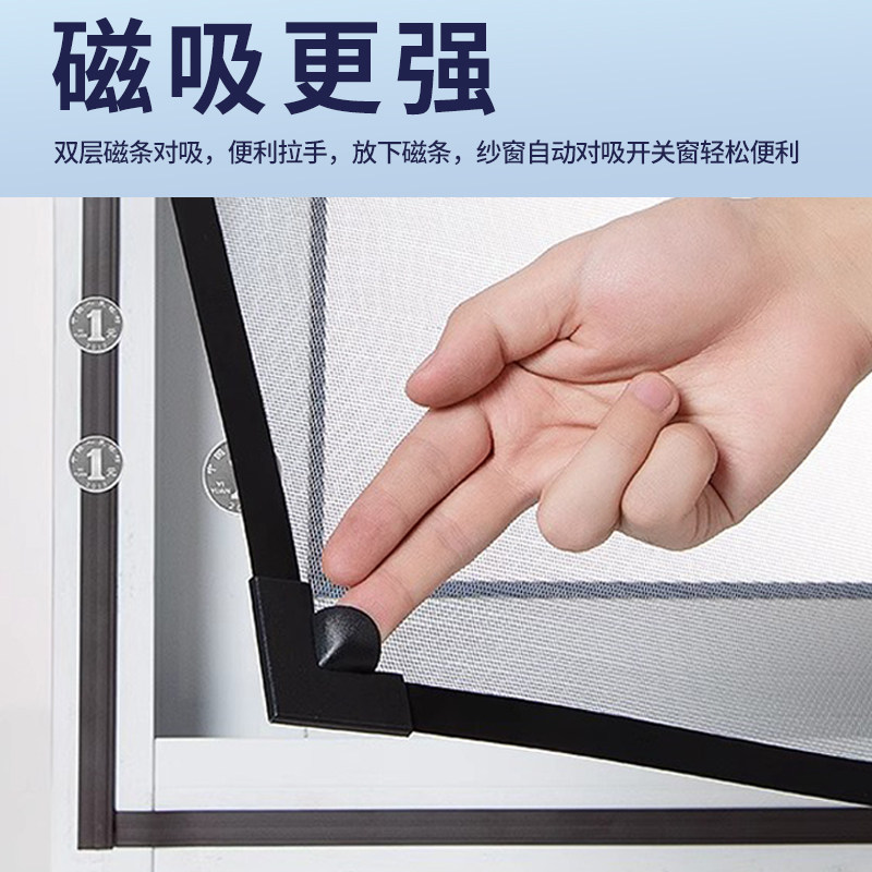 磁吸纱窗网自装 金刚网防蚊隐形纱网自粘魔术贴窗户帘粘贴简易边框