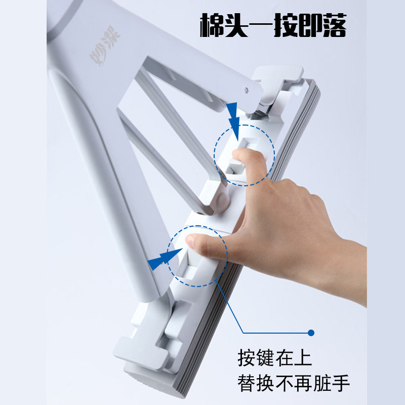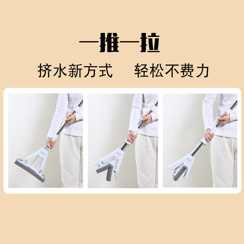 妙洁免手洗海绵拖把家用一拖2025新款 胶棉地拖头墩布 净吸水对折式