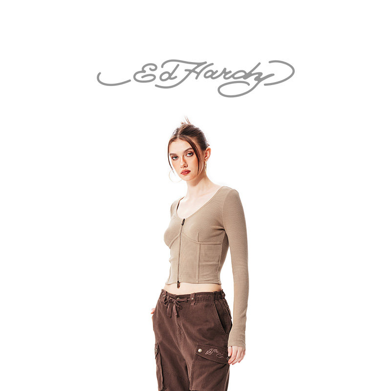 Hardy埃德哈迪秋季 性感长袖 新款 辣妹V领女士修身 T恤 美式