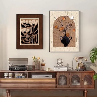 中古风柿柿如意餐厅装 客厅背景墙挂画高级感桌面摆件壁画 饰画法式