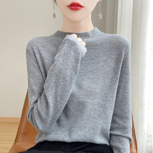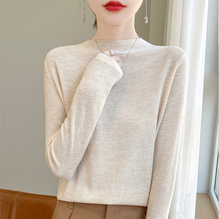 秋冬新款 鹿王羊绒衫 女士半高领平针纯色套头轻薄百搭打底针织衫
