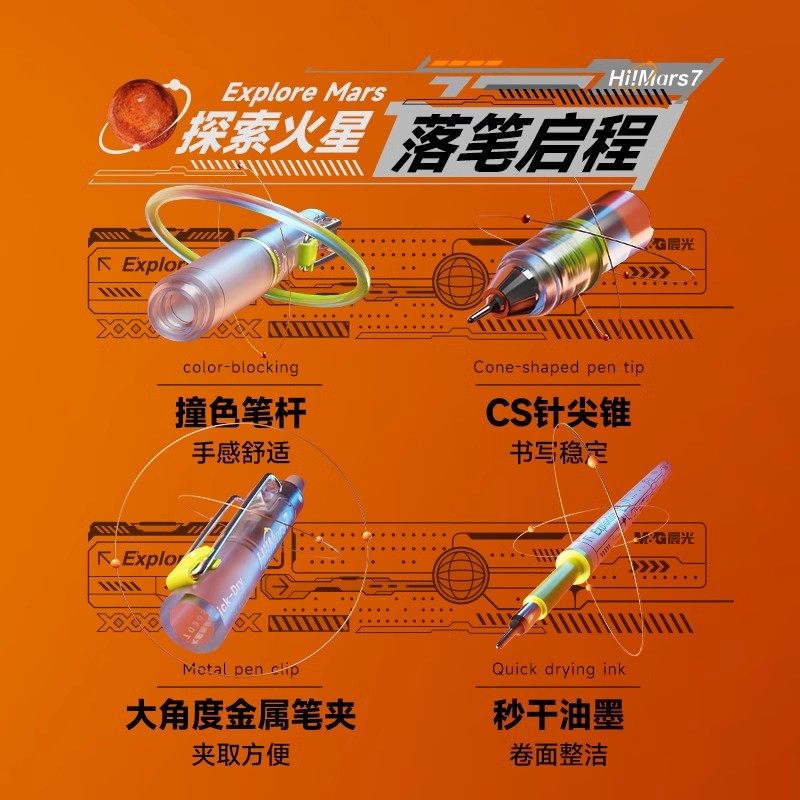 晨光你好火星笔按动中性笔火星限定黑色静音笔初中生专用速干小学生ST笔头水笔签字笔大墨王刷题笔圆珠笔文具