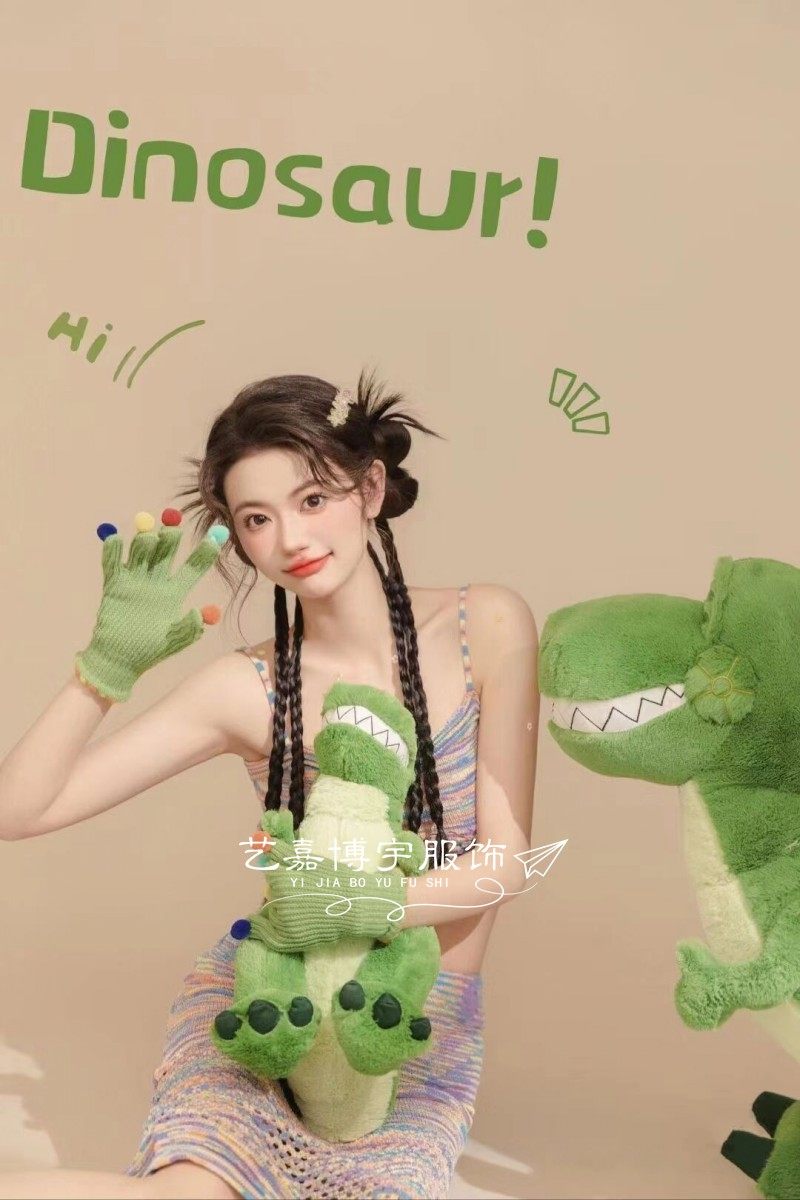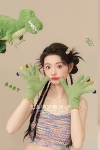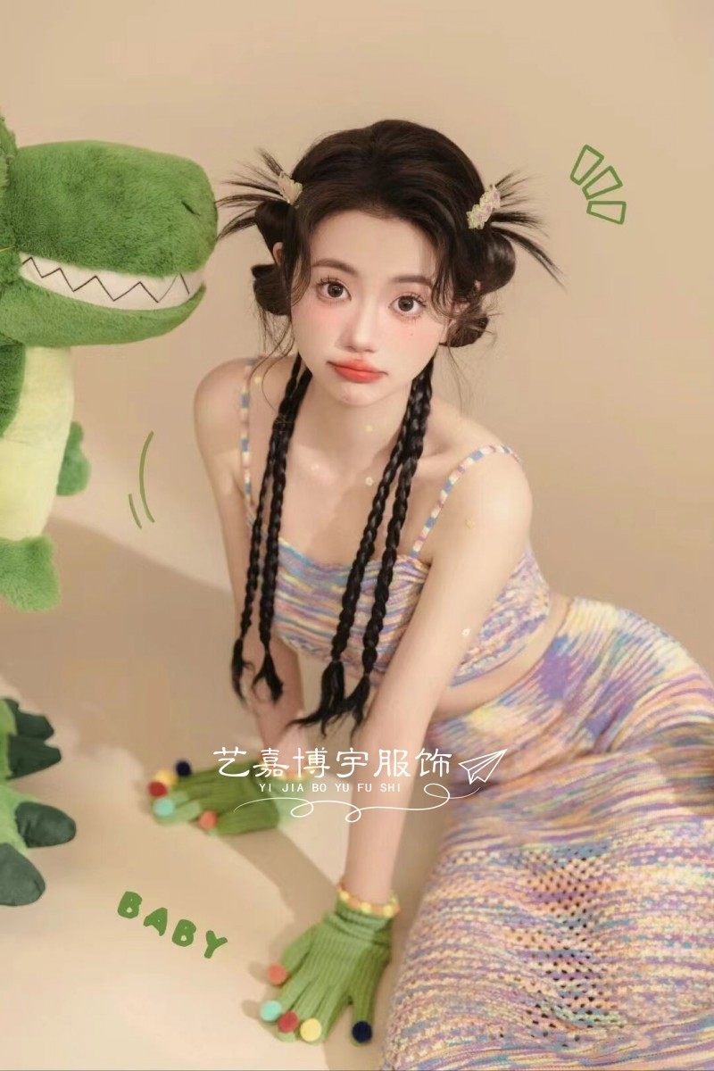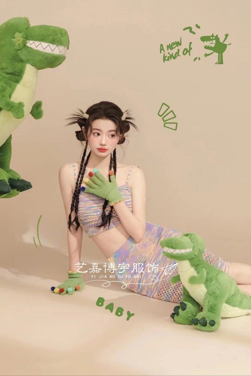 气少女写真艺术照服装 影楼新款 韩系清新彩色针织套裙多巴胺俏皮元