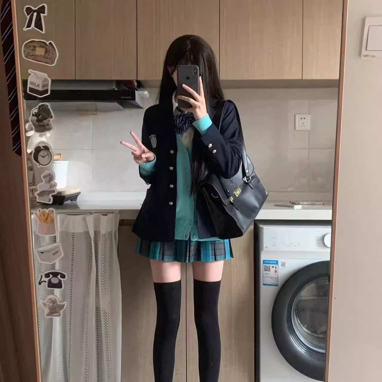 透气深蓝校裤 高腰舒适加绒保暖高中学生厚款 子加绒加厚冬季 校服裤