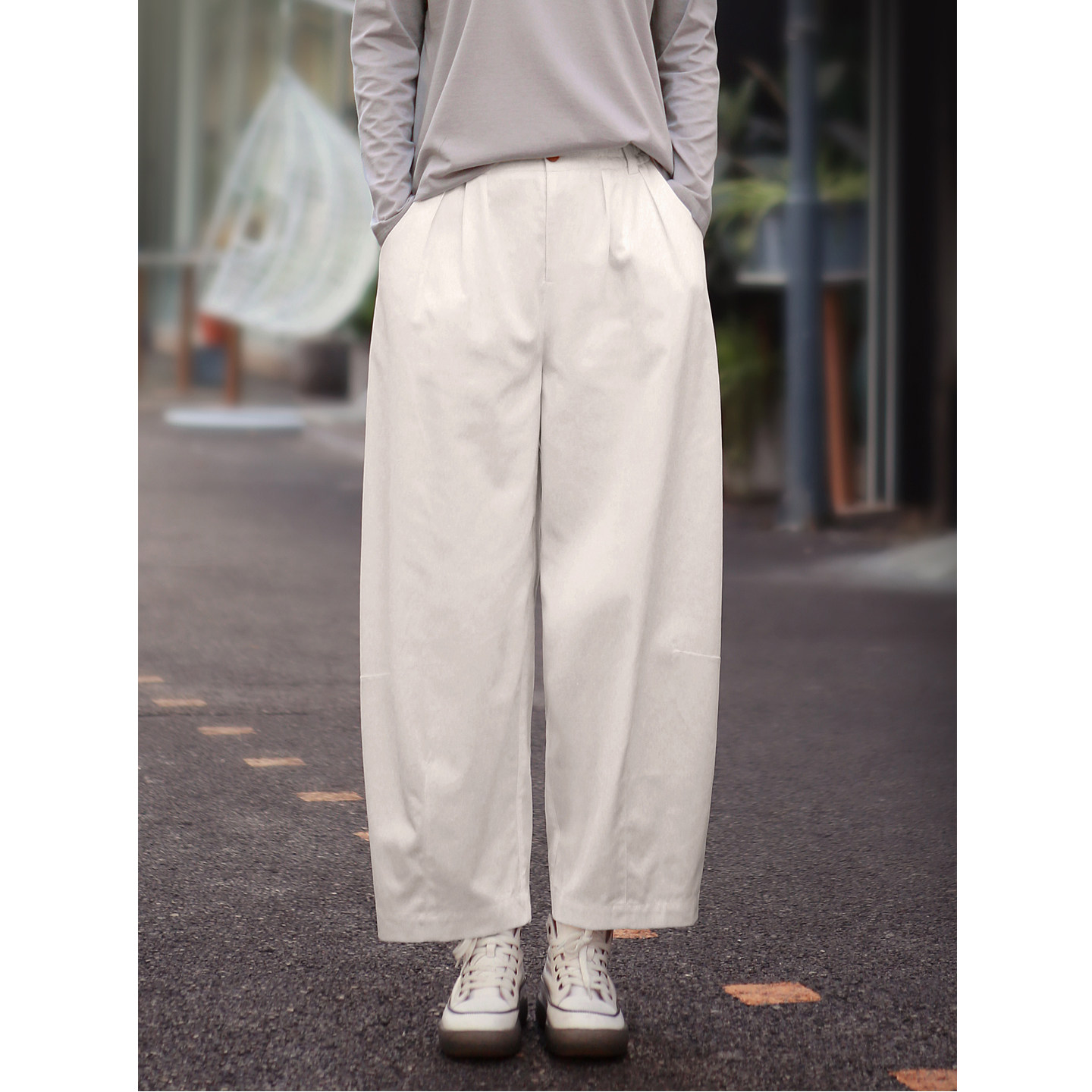 子白色气球裤 2026春季 女长绒棉茧型裤 阔腿裤 休闲宽松百搭 新款
