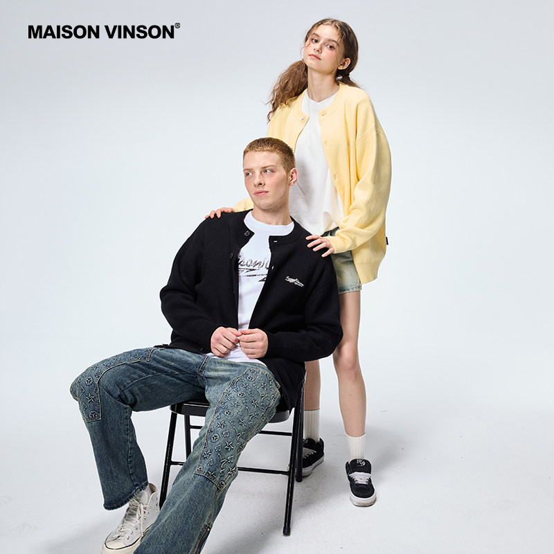 情侣装 MAISON 男春秋纯色毛衣男潮牌针织衫 开衫 休闲外套 VINSON