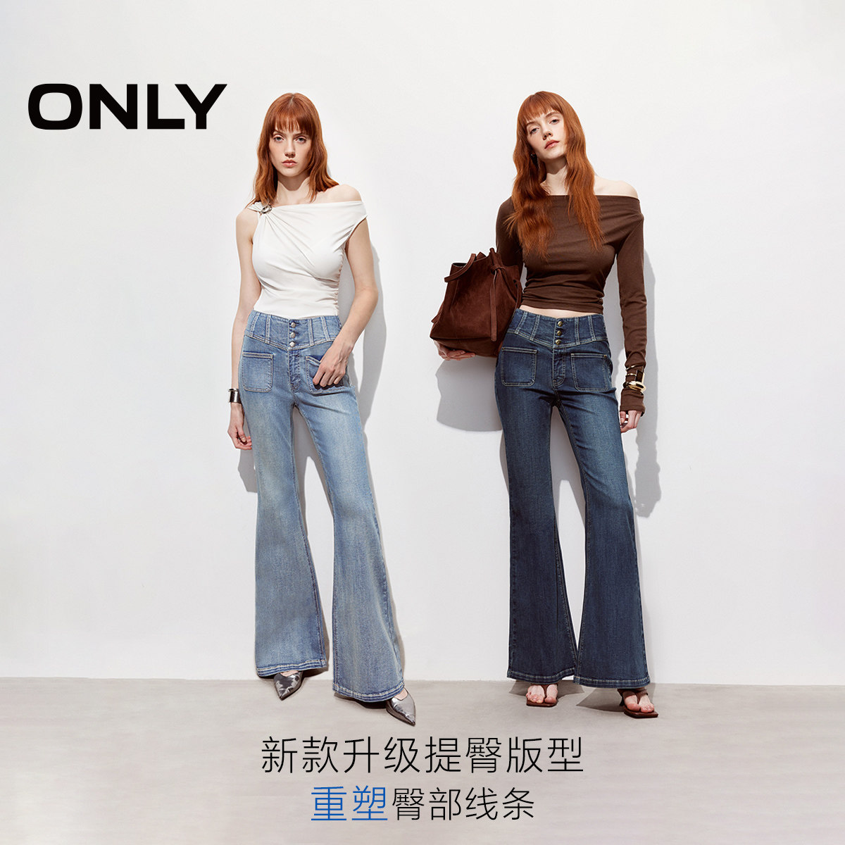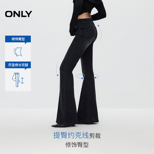 弹力莱卡复古高腰黑色喇叭牛仔裤 新款 ONLY2026春季 女 美腿神裤