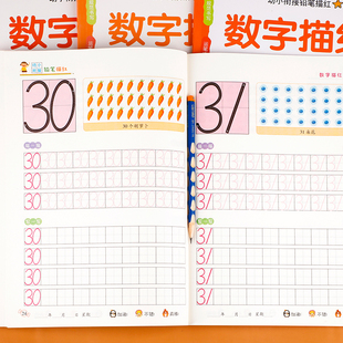 数字描红本幼儿园0到100幼小衔接练字帖每日一练儿童数字描红1一10学前班小中班大班幼儿练习册全套数学启蒙教材专项训练写练字本