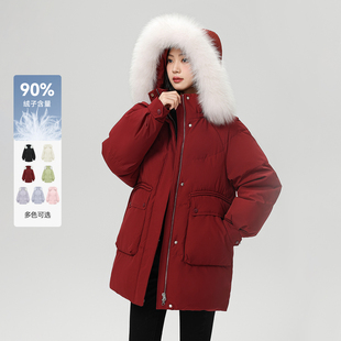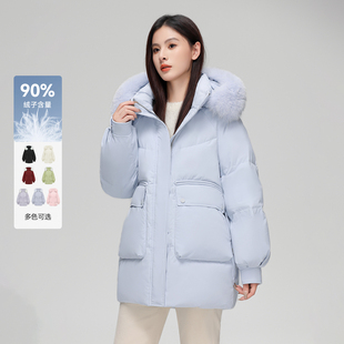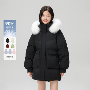 雪中飞2025冬新款 羽绒服可拆帽狐狸毛领温暖甜美百搭 女士短款