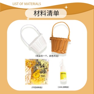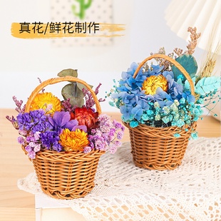 元 旦节永生花干花diy材料包手工手提小花篮插花干花礼物制作