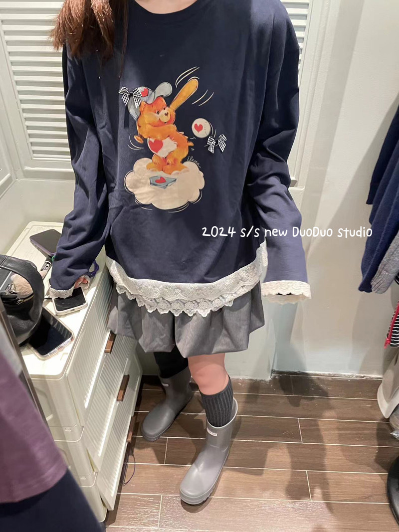 宝宝条纹儿童半高领T恤童装 冬款 齐齐熊男童打底衫 女童纯色 发热