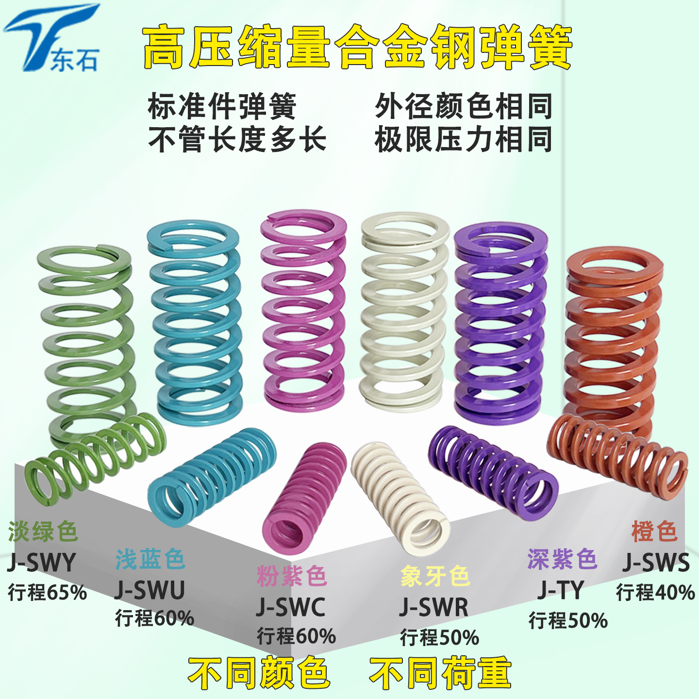 SWY11 42外径YSWY合金钢矩形弹簧超大压缩量型淡绿色SSWY模具弹簧