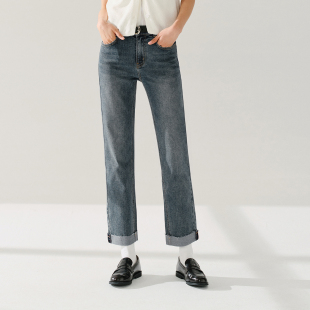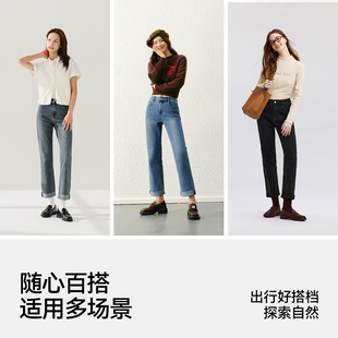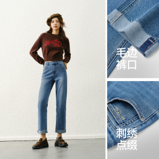 森马牛仔裤 子显腿直女裤 女毛边直筒裤 蛋卷裤 子 2025春季 森柔牛仔